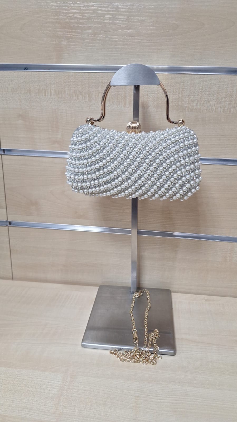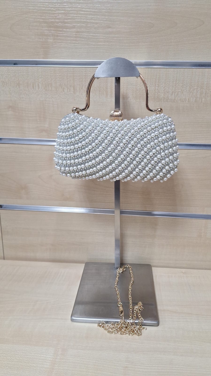 1. Puzderko z ozdobnego materiału. Model z długim łańcuszkiem w zestawie.