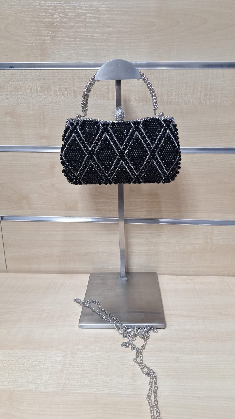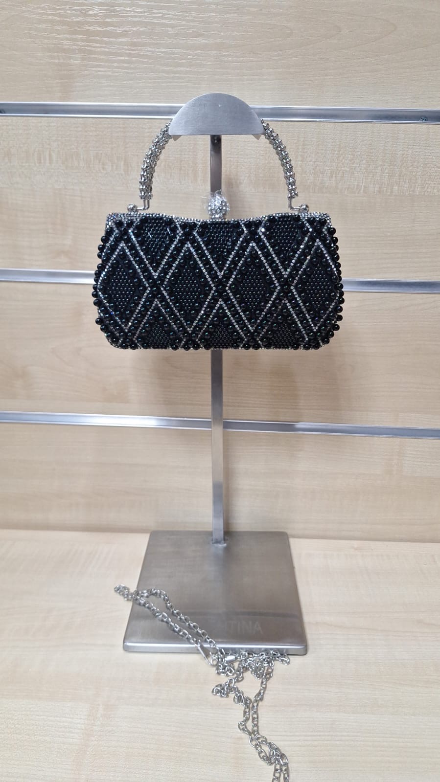 1. Puzderko z ozdobnego materiału. Model z długim łańcuszkiem w zestawie.
