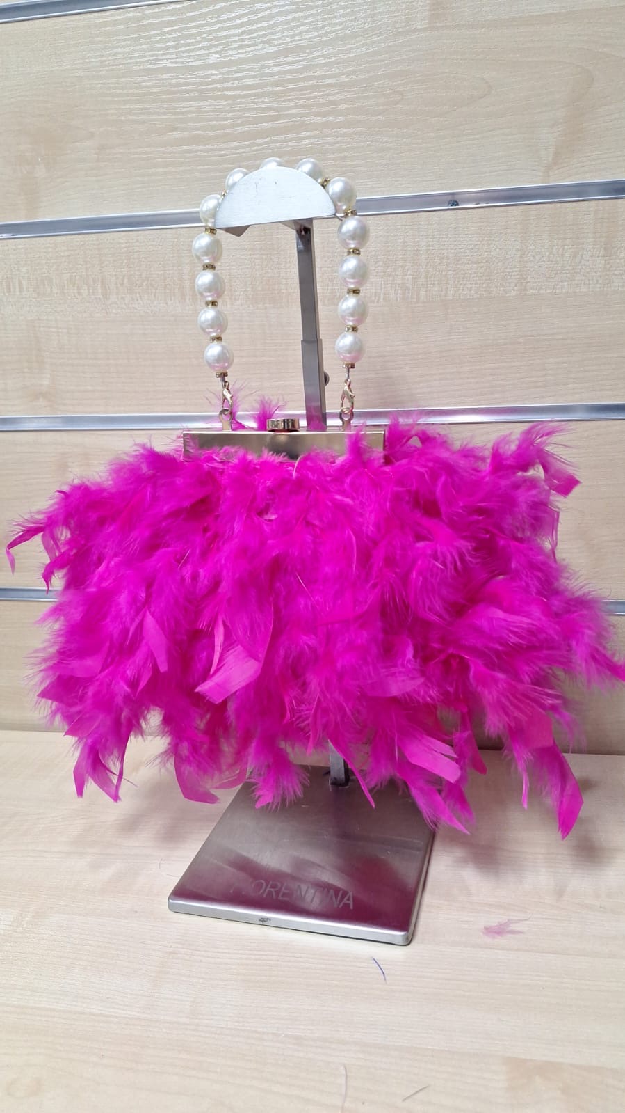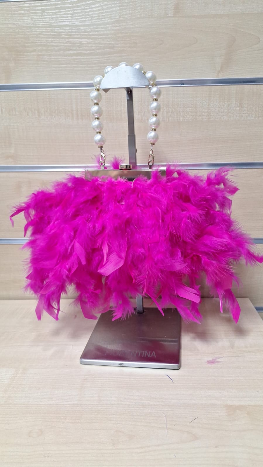 Puzderko z ozdobnego materiału. Model z długim łańcuszkiem w zestawie.