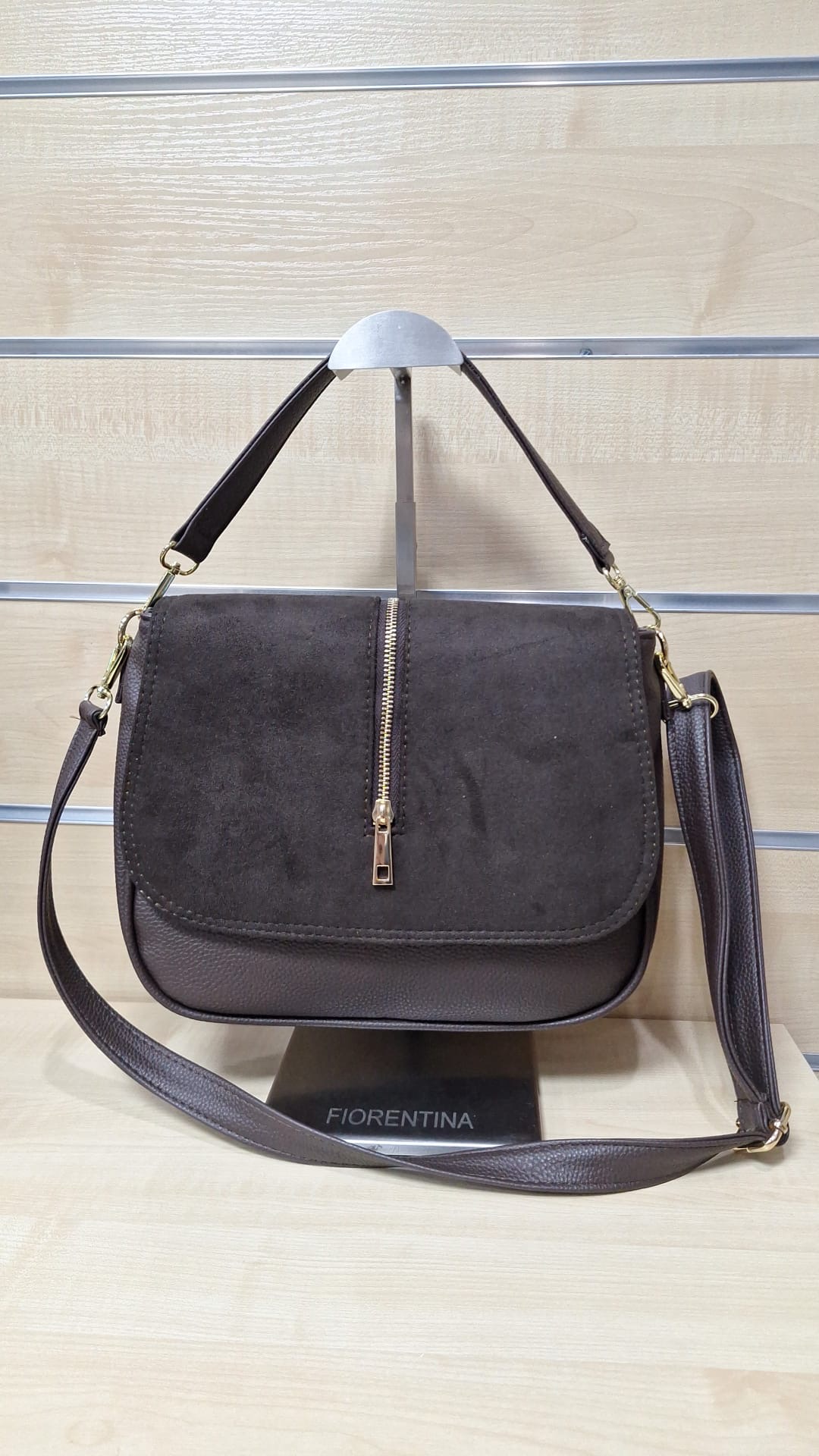 Torebka z ozdobnym przodem, model wykonany ze skóry ekologicznej.