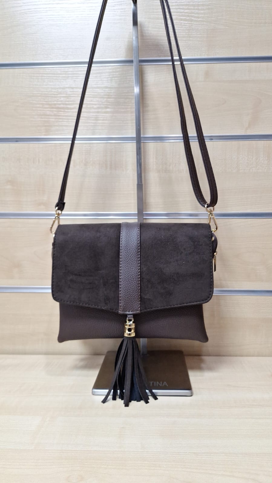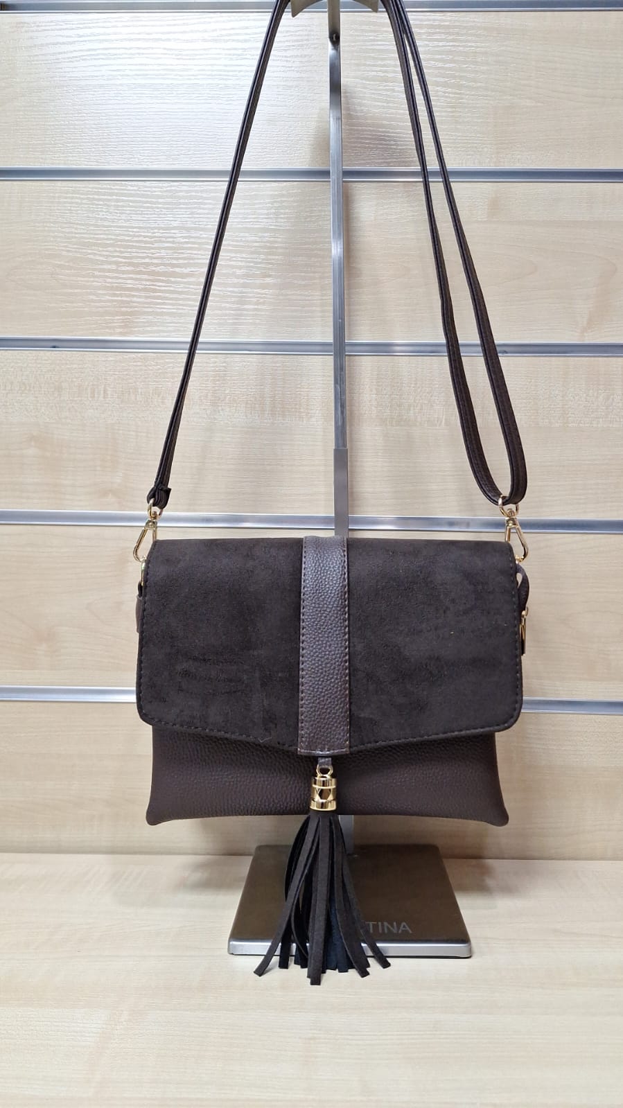 Torebka z ozdobnym przodem, model wykonany ze skóry ekologicznej.
