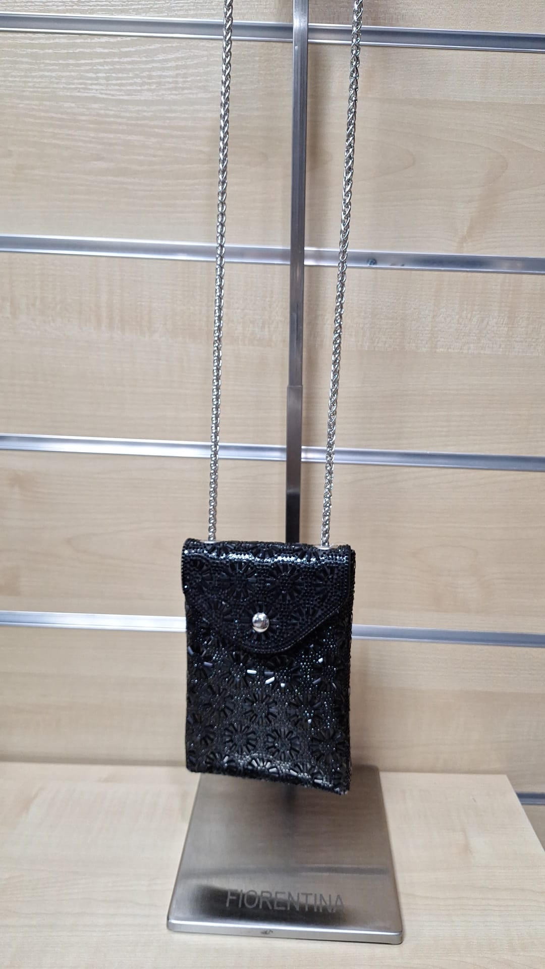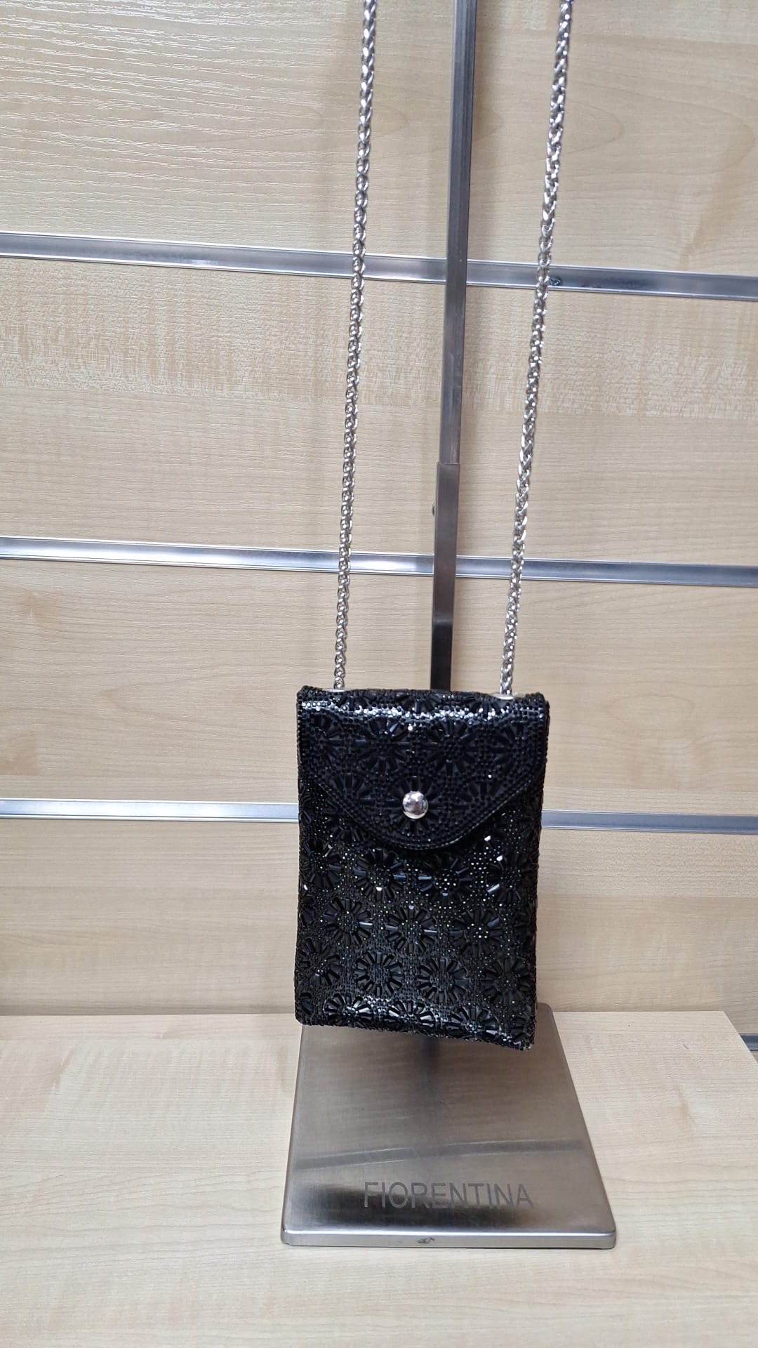 1. Puzderko z ozdobnego materiału. Model z długim łańcuszkiem w zestawie.