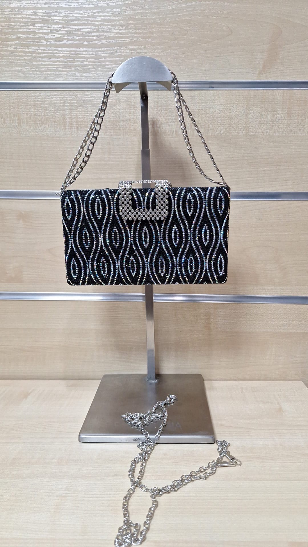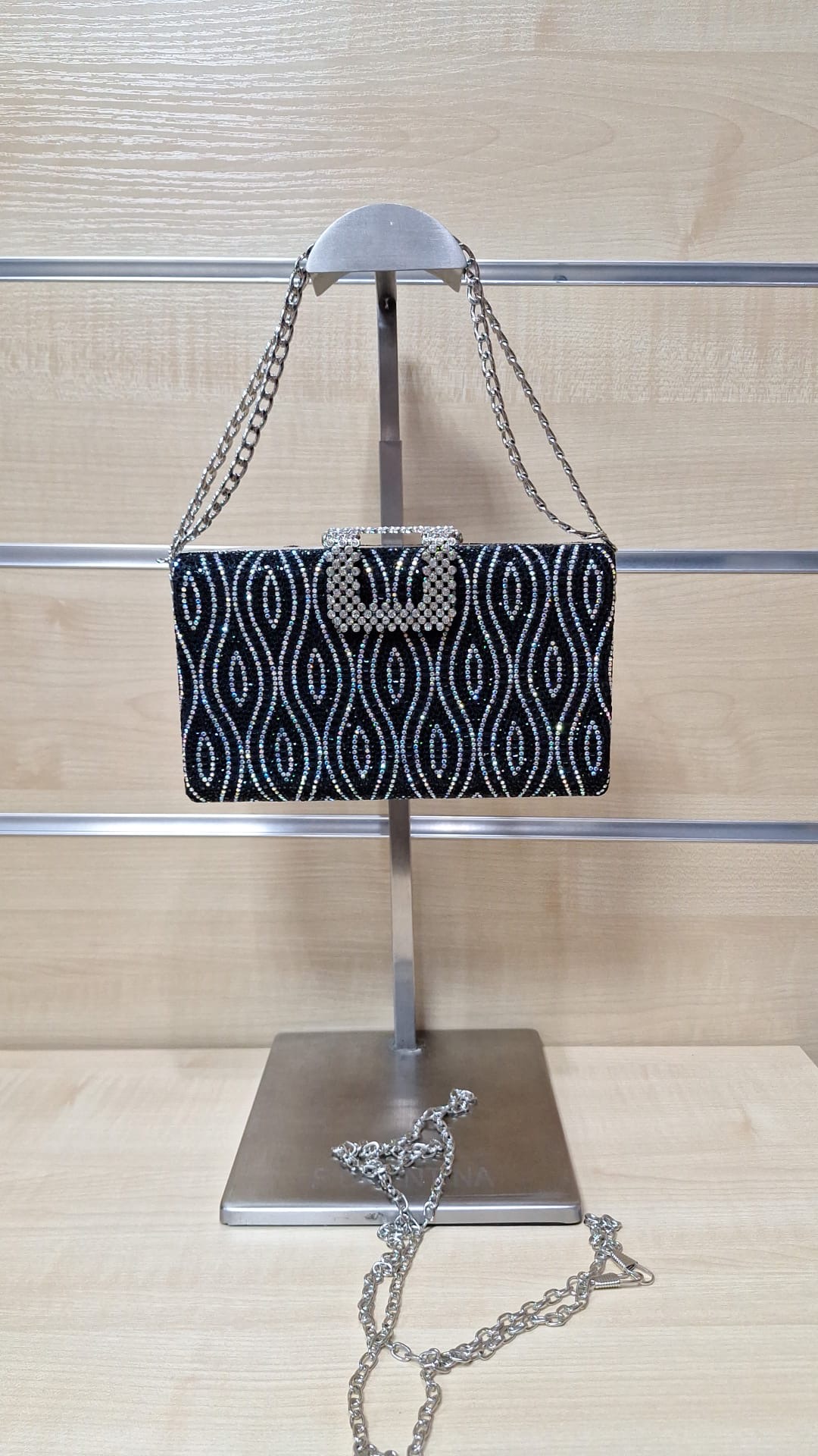 1. Puzderko z ozdobnego materiału. Model z długim łańcuszkiem w zestawie.