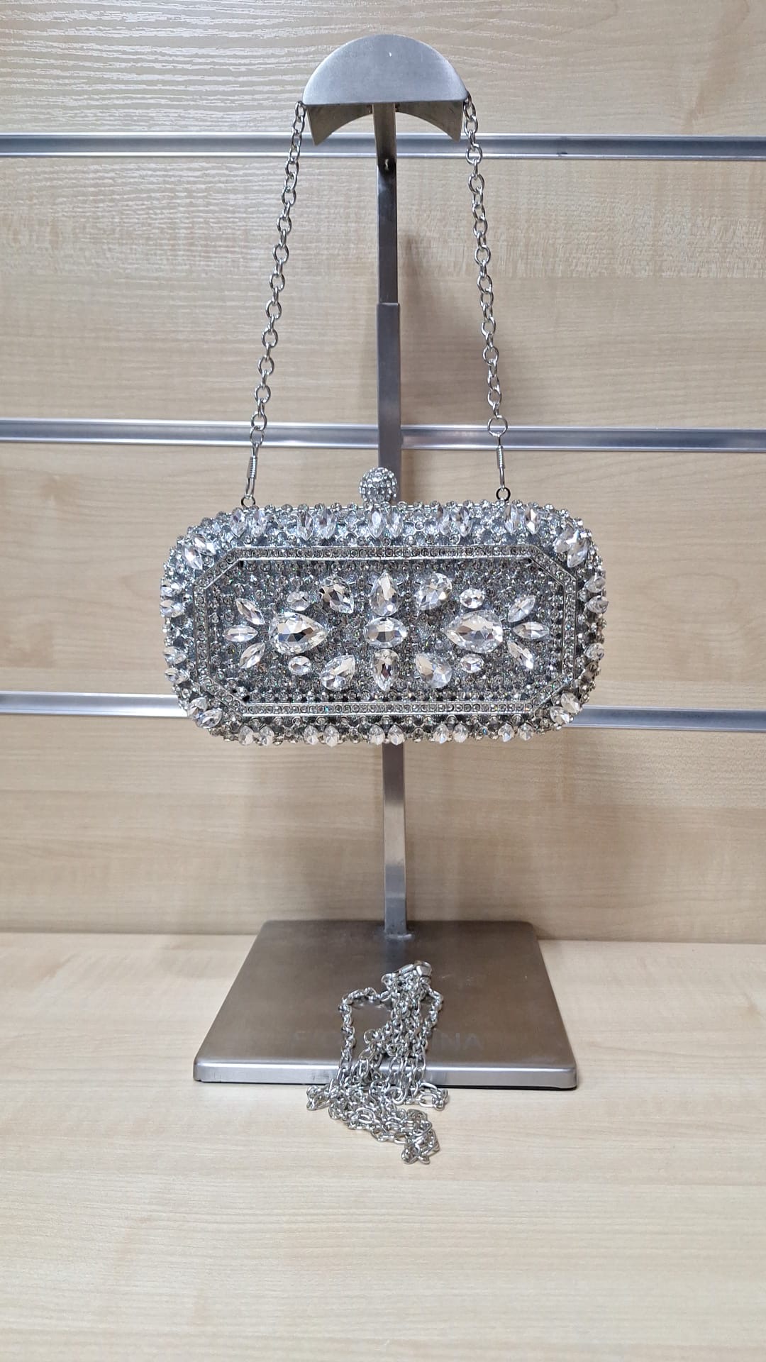 1. Puzderko z ozdobnego materiału. Model z długim łańcuszkiem w zestawie.
