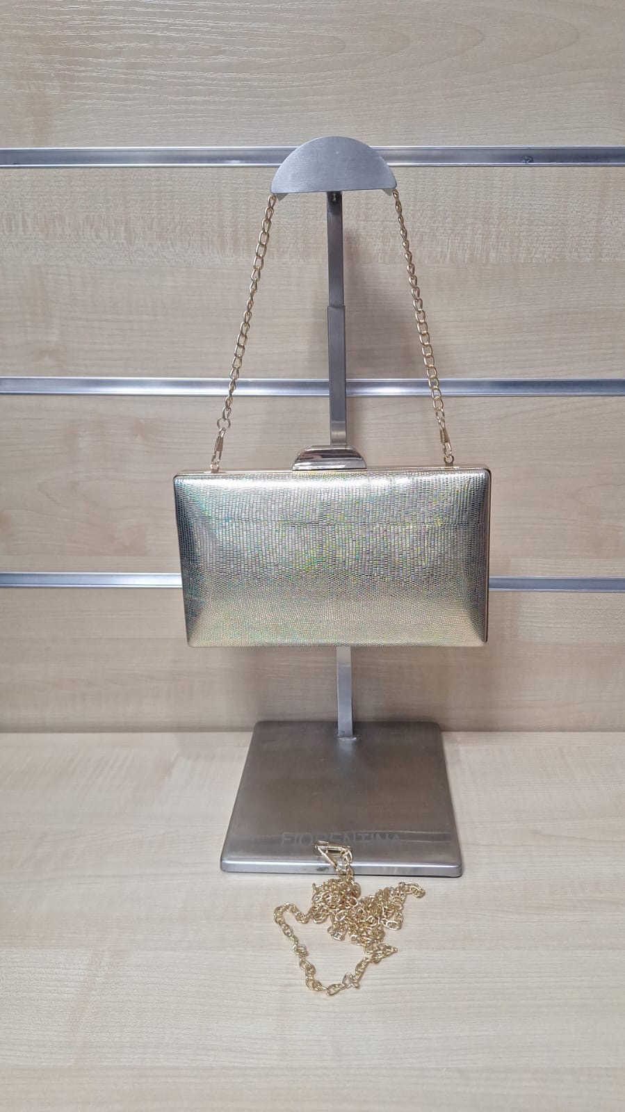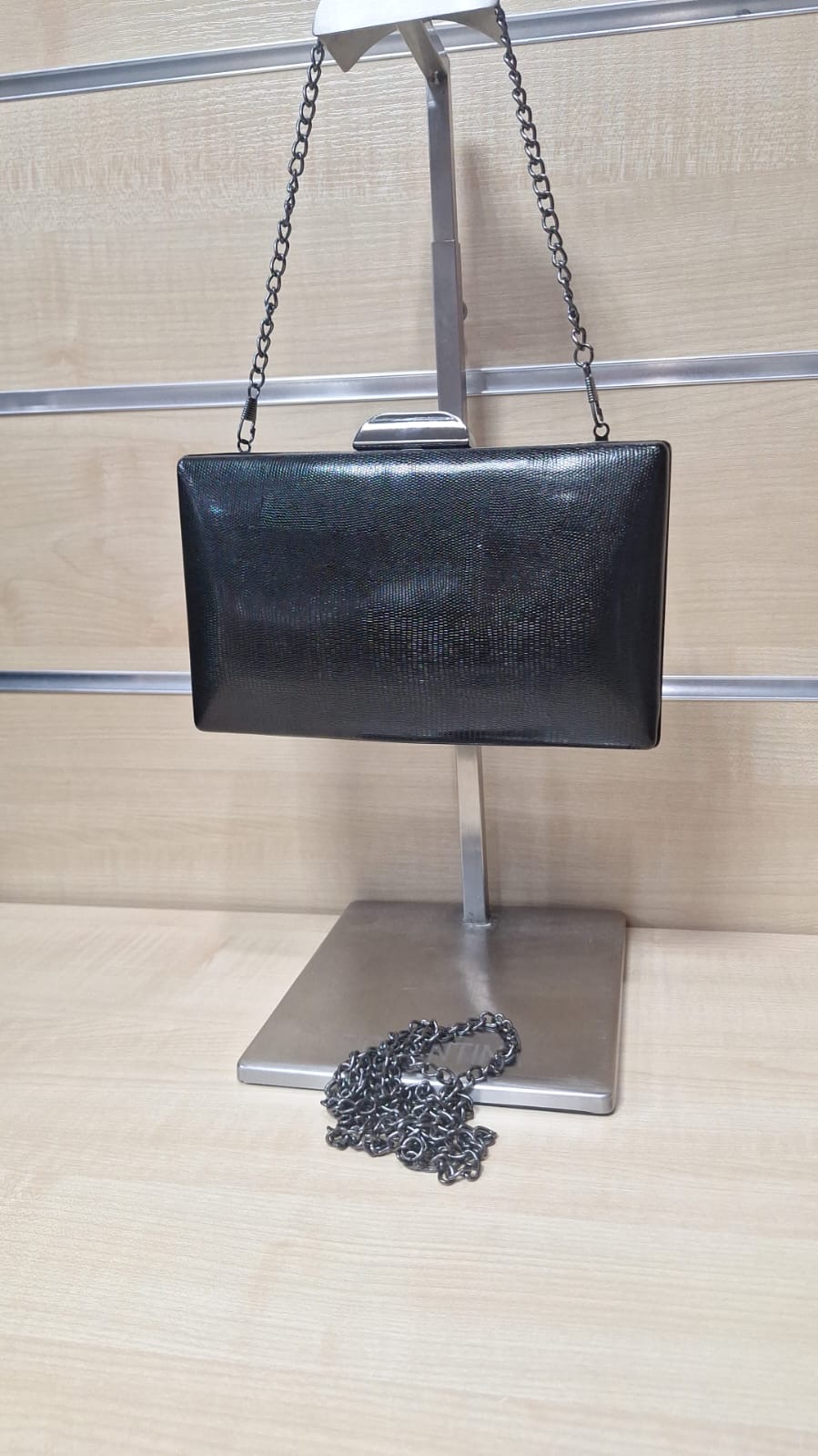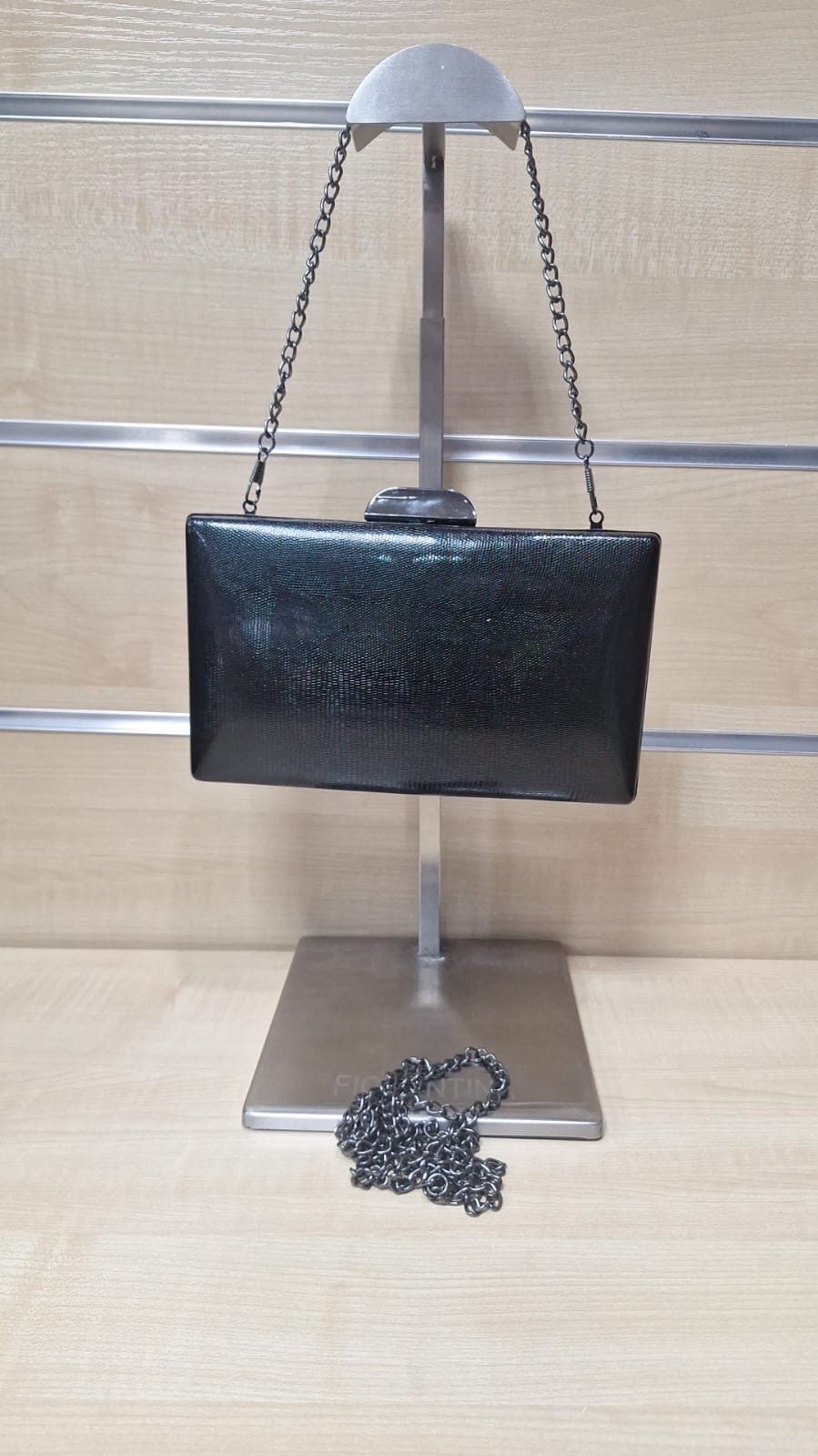 Puzderko z ozdobnego materiału. Model z długim łańcuszkiem w zestawie.