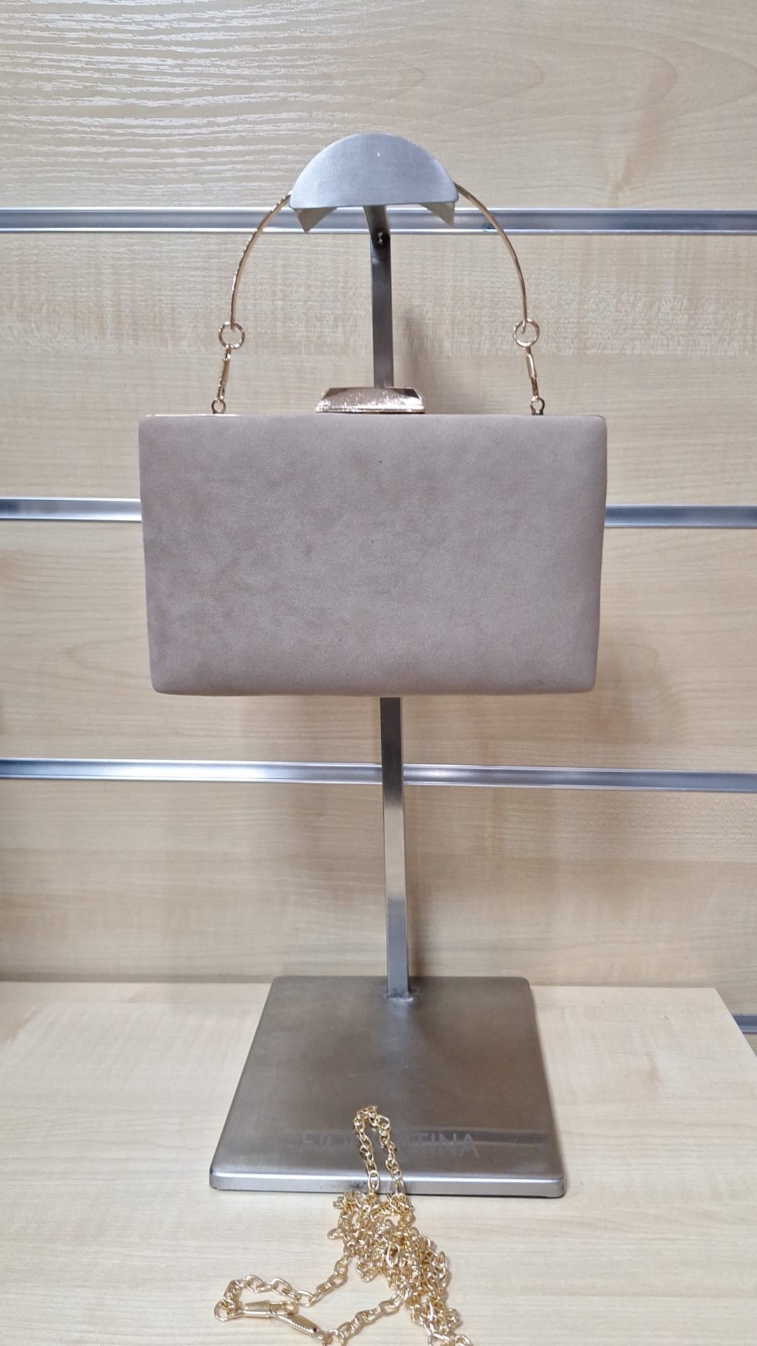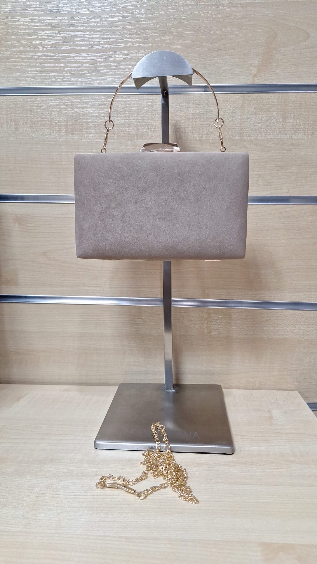 Puzderko z ozdobnego materiału. Model z długim łańcuszkiem w zestawie.