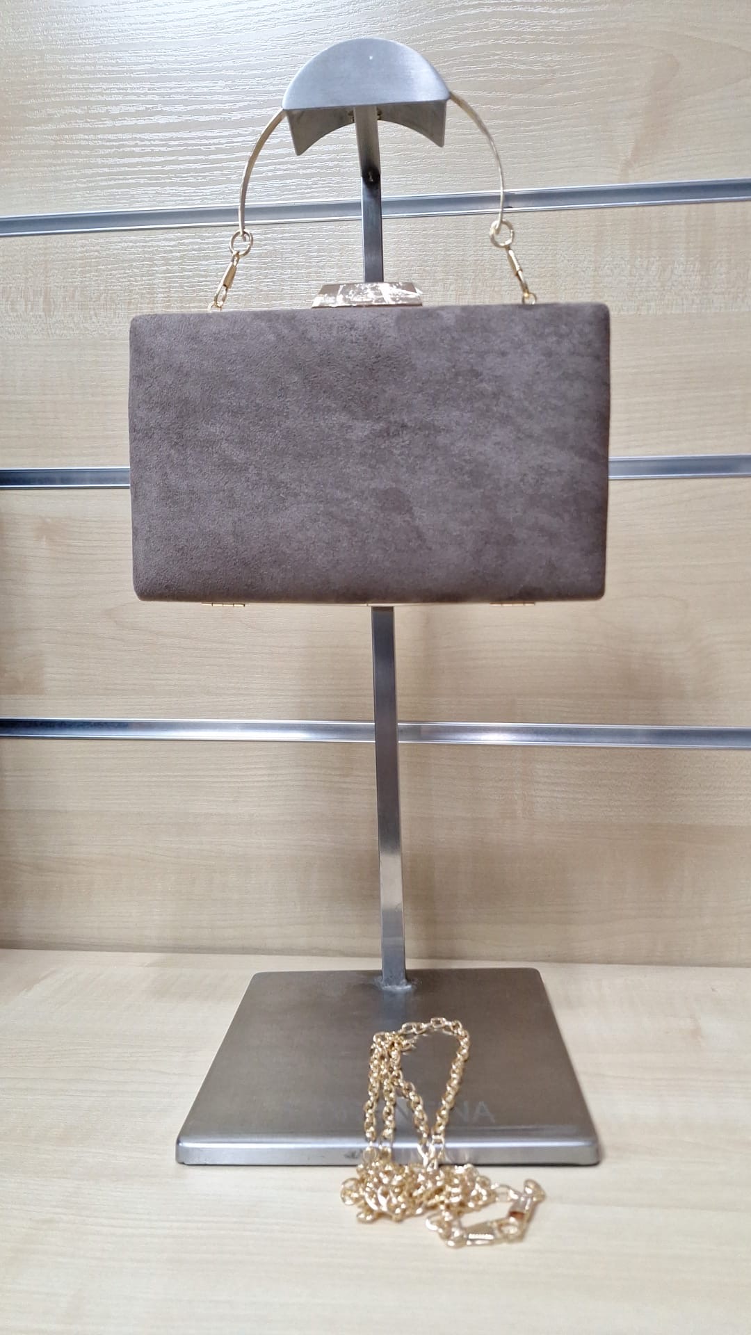 Puzderko z ozdobnego materiału. Model z długim łańcuszkiem w zestawie.