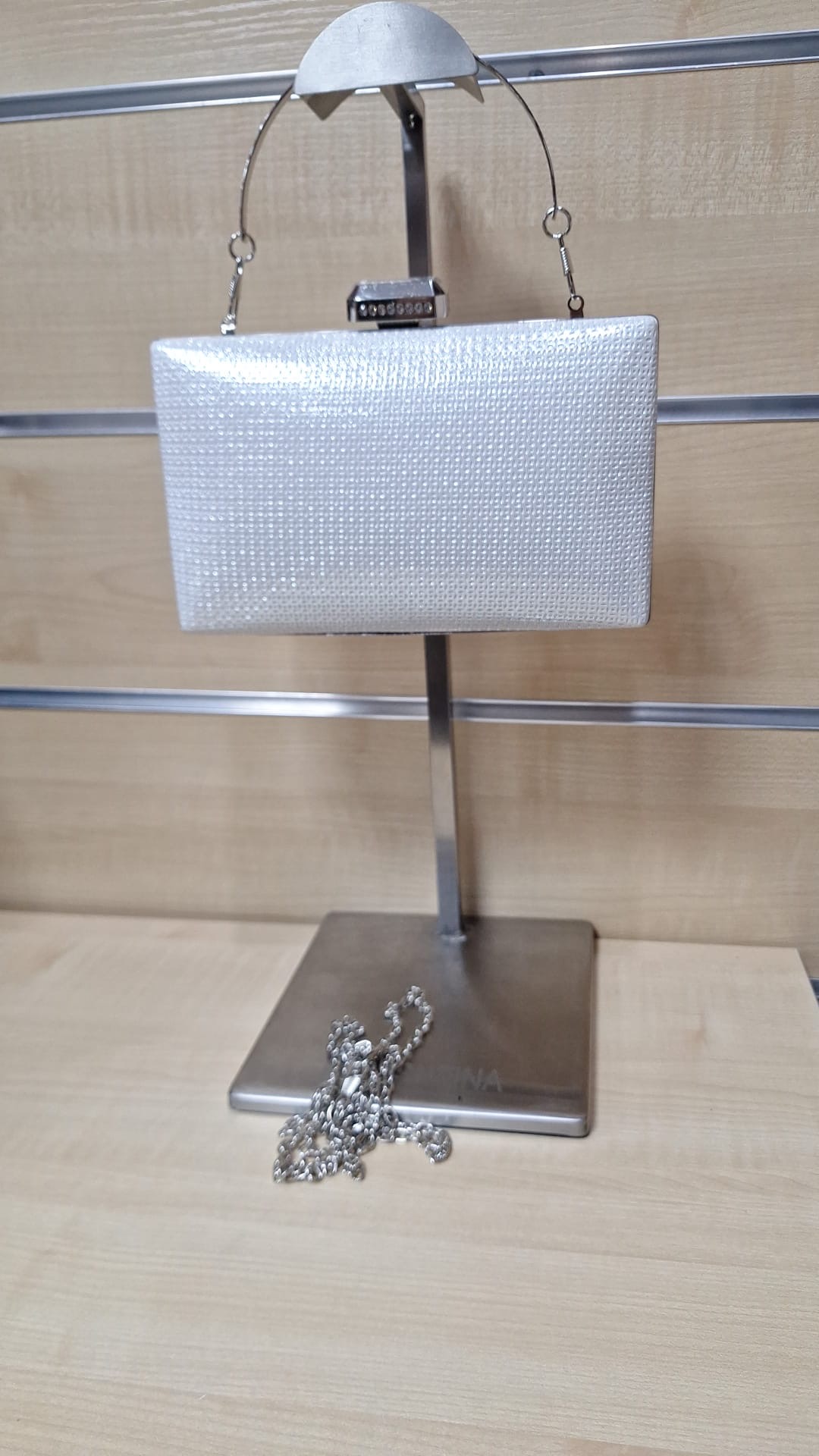 Puzderko z ozdobnego materiału. Model z długim łańcuszkiem w zestawie.